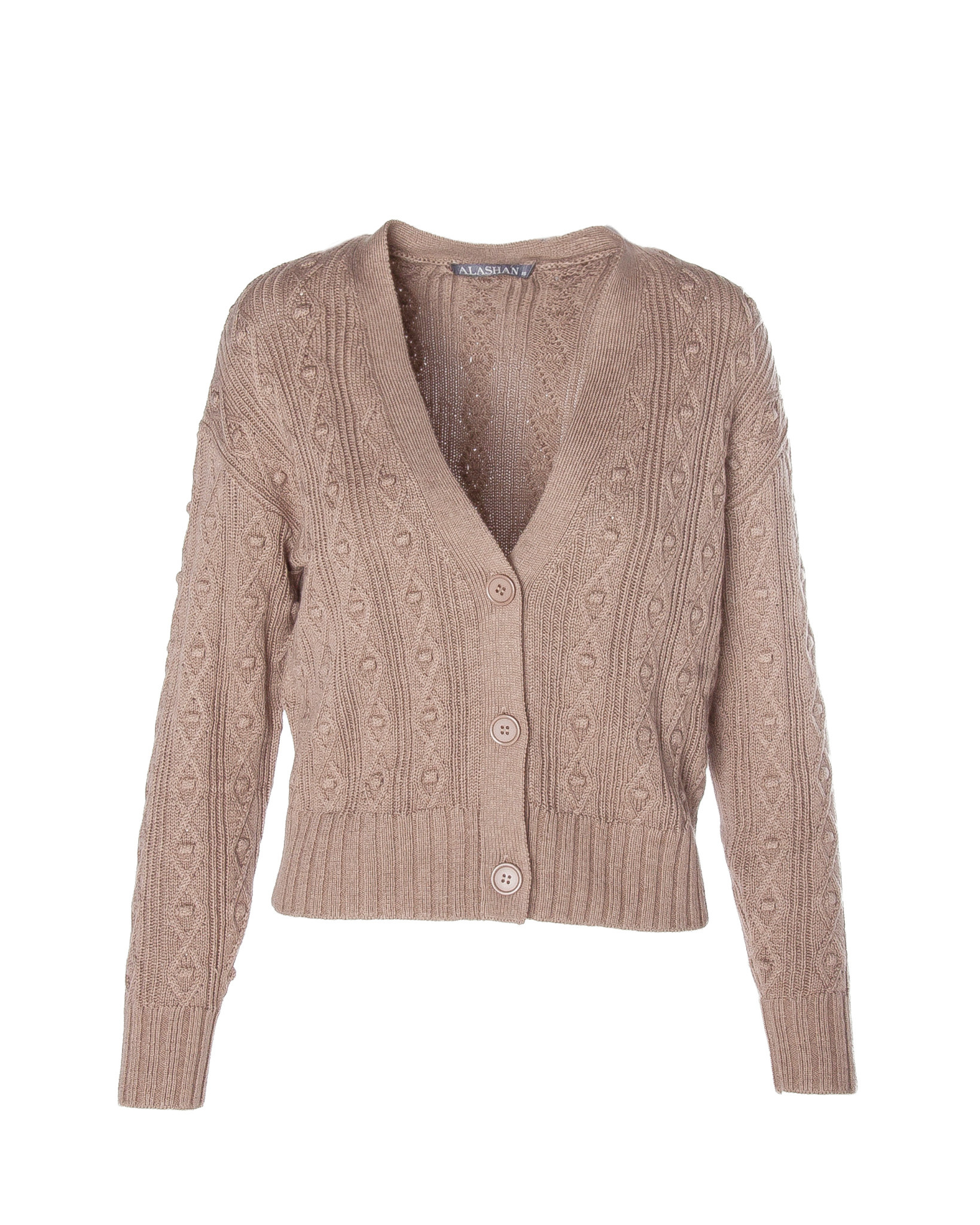 ALASHAN Cotton Cashmere Diamond Bobble Cardigan