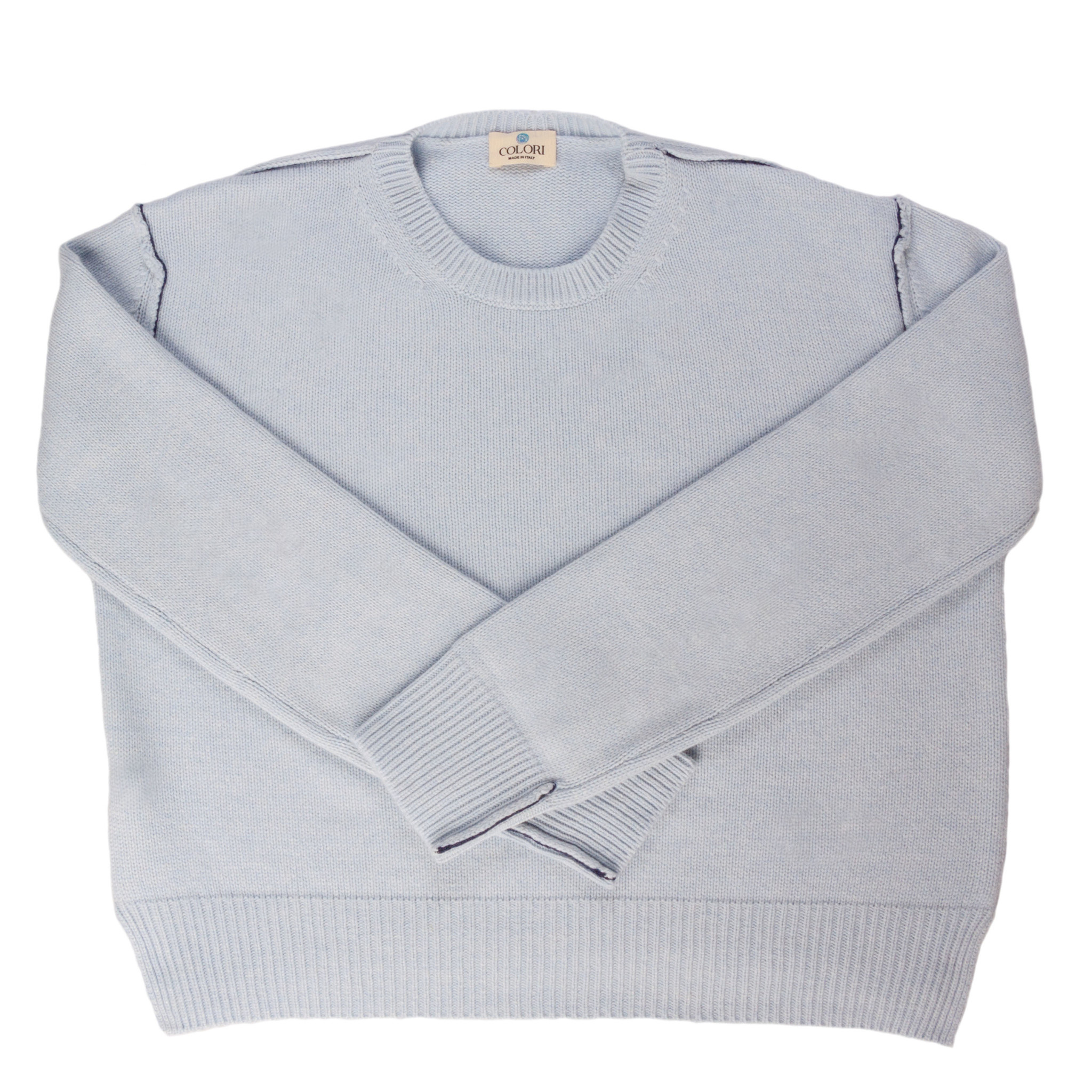 COLORI Cashmere Contrast Stitching Crew Neck Sweater