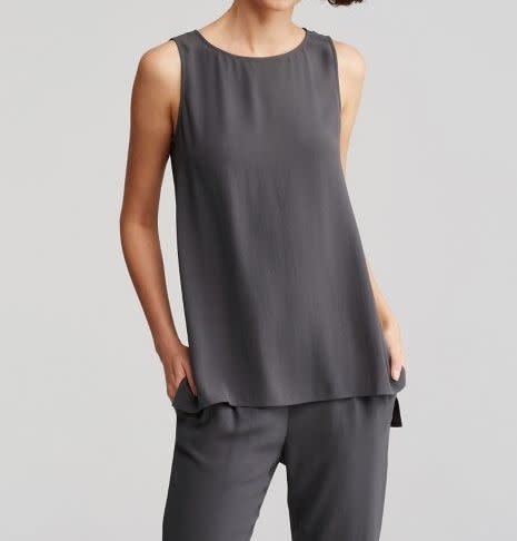 Create an accountThe Icon shell, with a bateau neckline, stepped hem and side slits. Easy, straight fit with hip coverage. Finely finished with banding at the neck and arms.