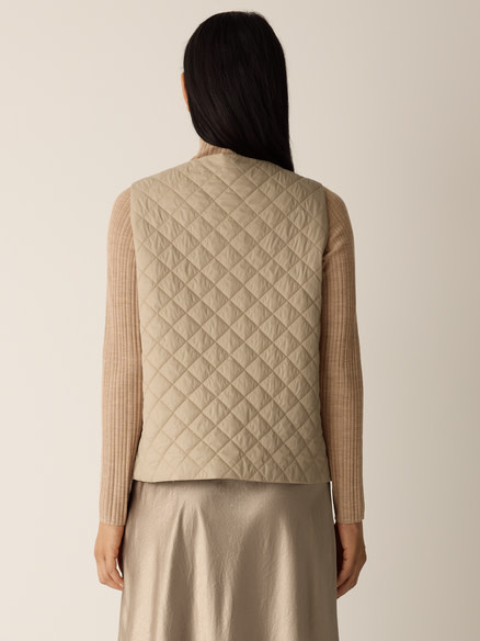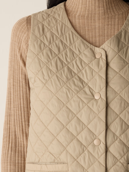 Create an account- V-neck, sleeveless, snap button front.