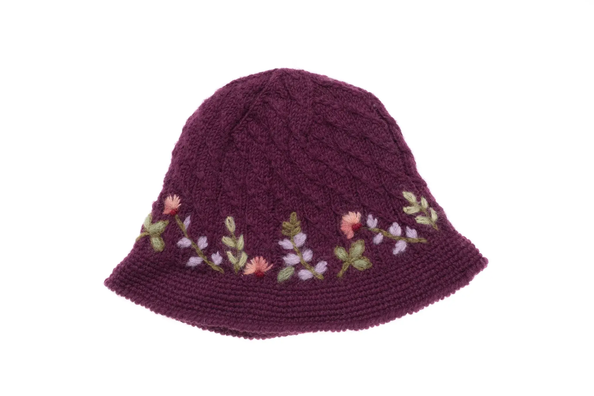 Create an accountThe Meadow Brim Hat features dainty floral embroidery, cable knit, and seed stitch brim. Polished embroidery using mohair transforms this brim hat into a modern take on a throwback silhouette. 100% soft wool, fleece lined.