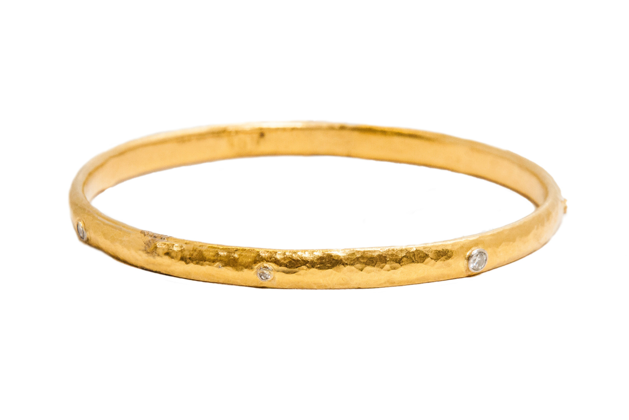 Create an accountClassic hammered finish with .48tcw white diamonds and 24k gold.