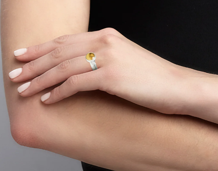 A delightful circular feature ring from Gurhan in sterling silver and 24k gold. From the Amulet Collection, in a size 6.5.