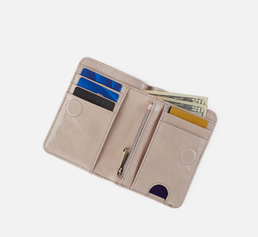 - Interior Features: Bill slot, 5 credit card slots, ID slot, zip pocket