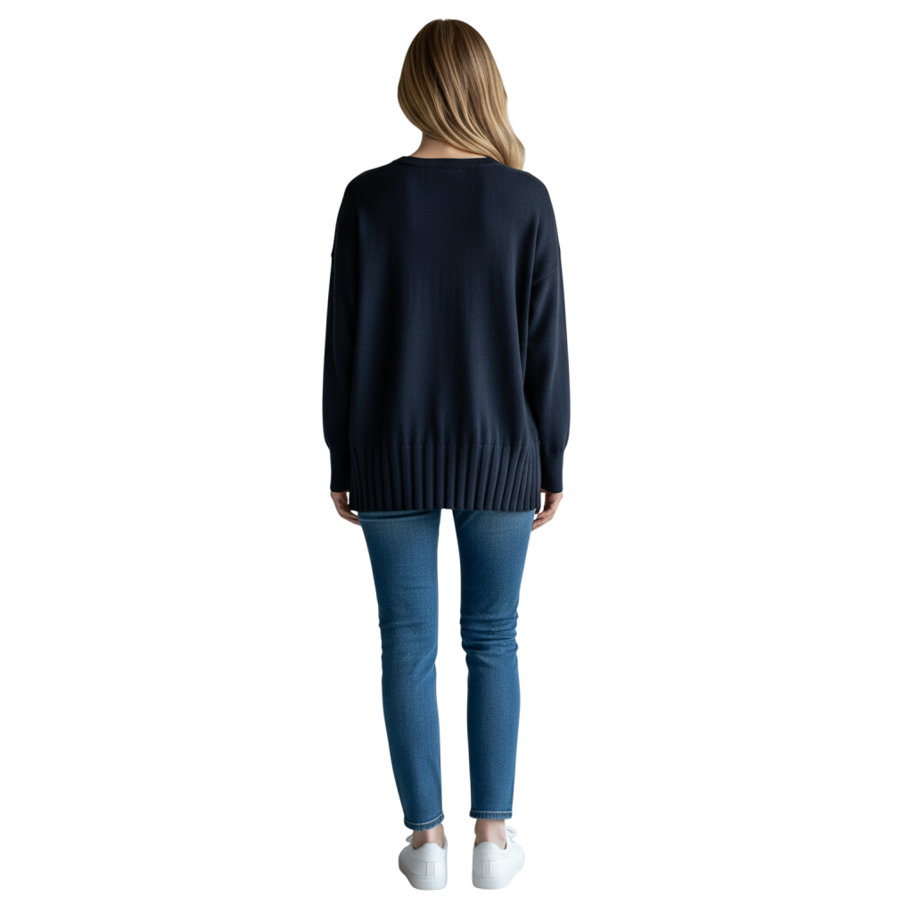 The ribbed detailing at the bottom provides a polished, tailored look