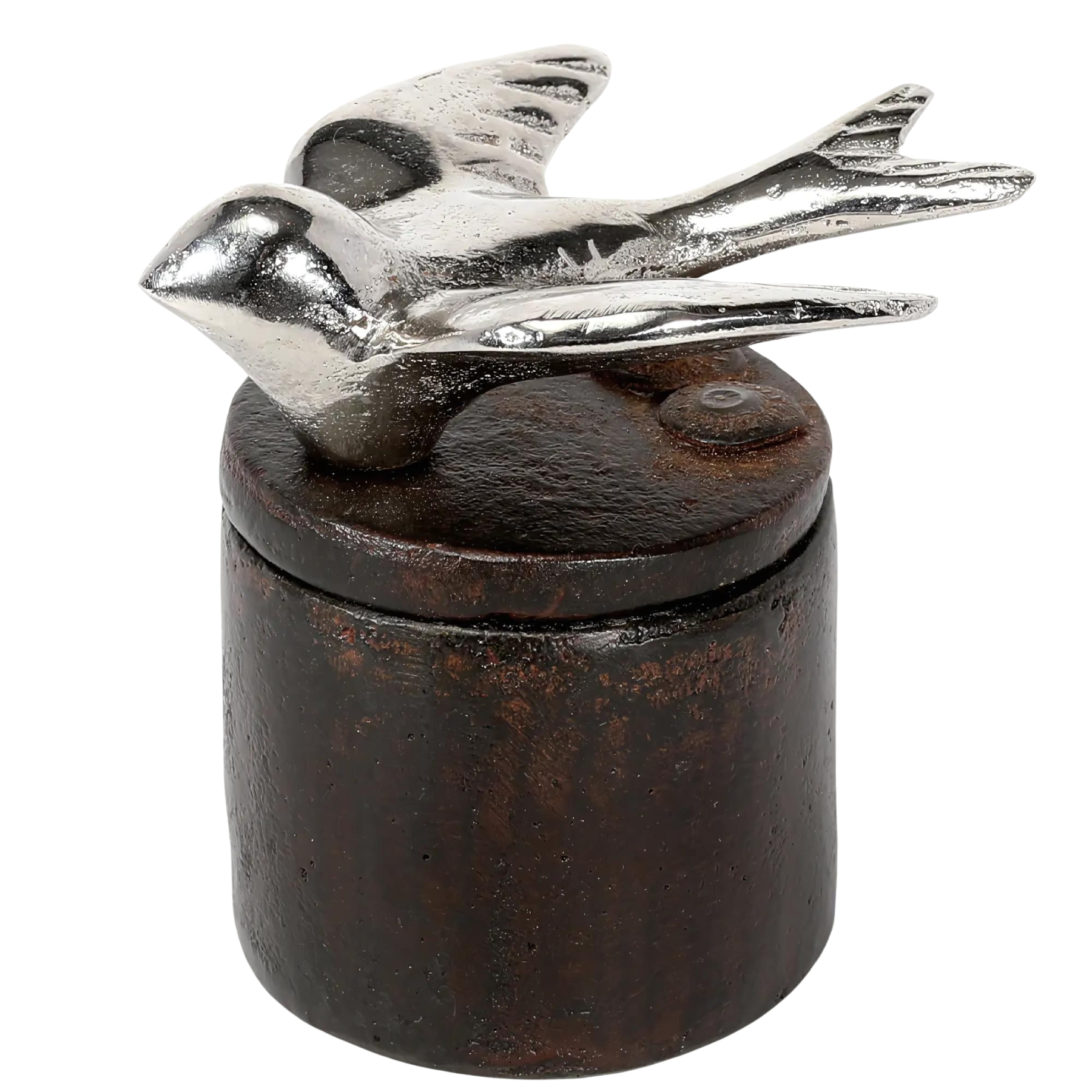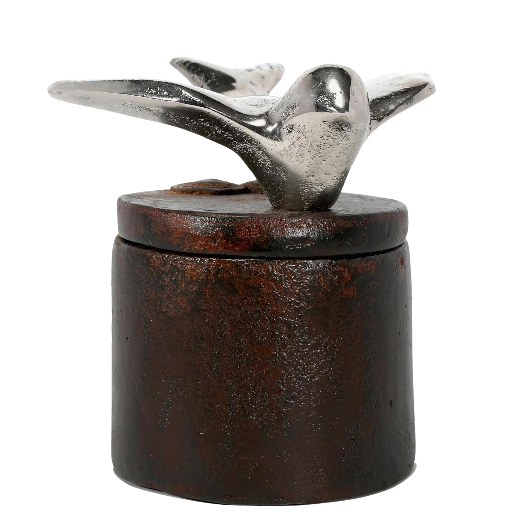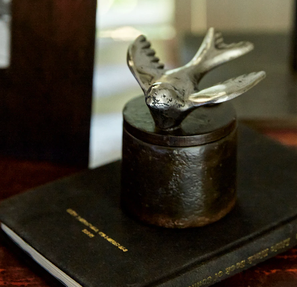 Create an accountIn Mexico the golondrinas are an important symbol of family. Hold your cherished memories close in this lovely wax cast leather lined iron box.