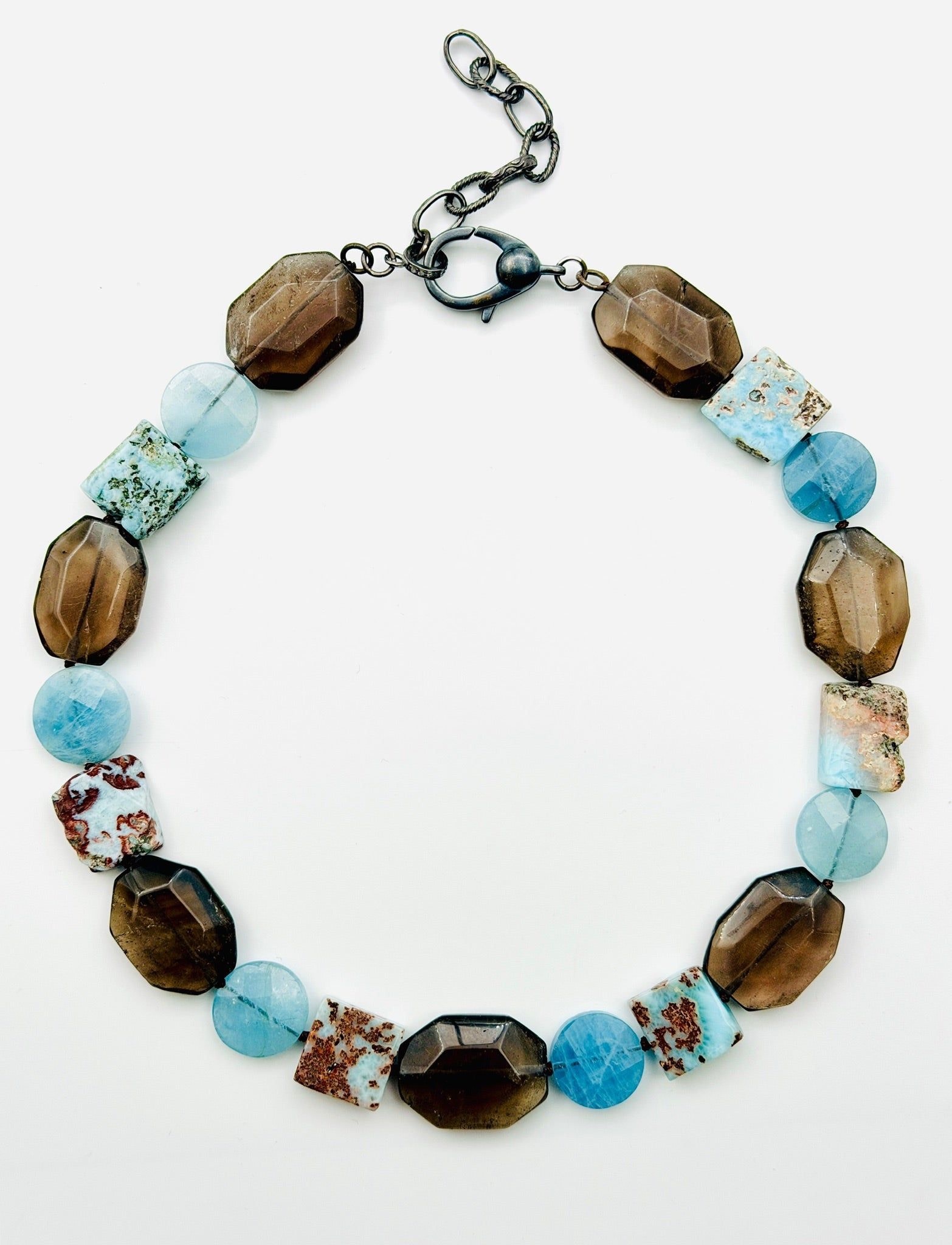 JMNYC Faceted Multi-Stone Necklace- Aquamarine, Smoky Quartz, Larimar