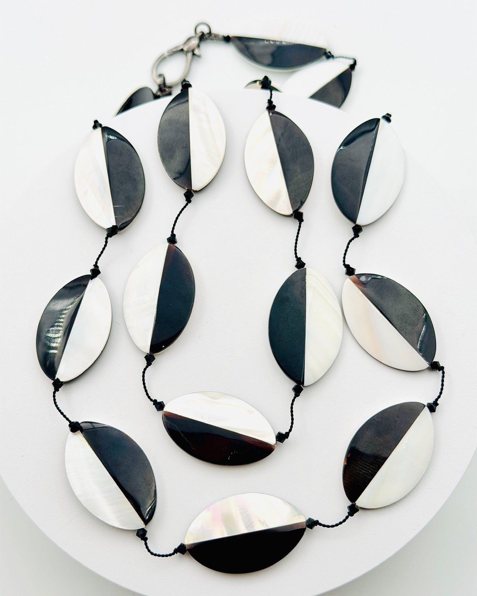 JMNYC 36" Oval Mother of Pearl and Black Tab Necklace