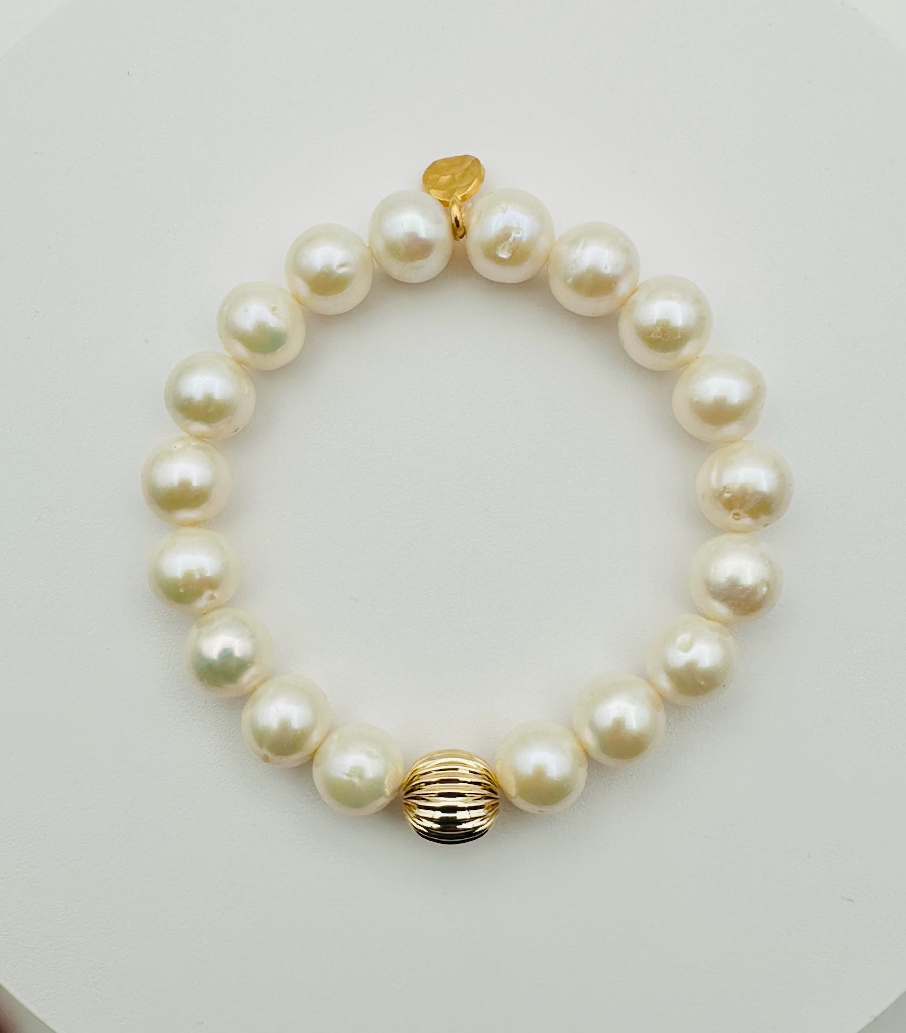 10mm round freshwater pearl bracelet with 18k gold ball.