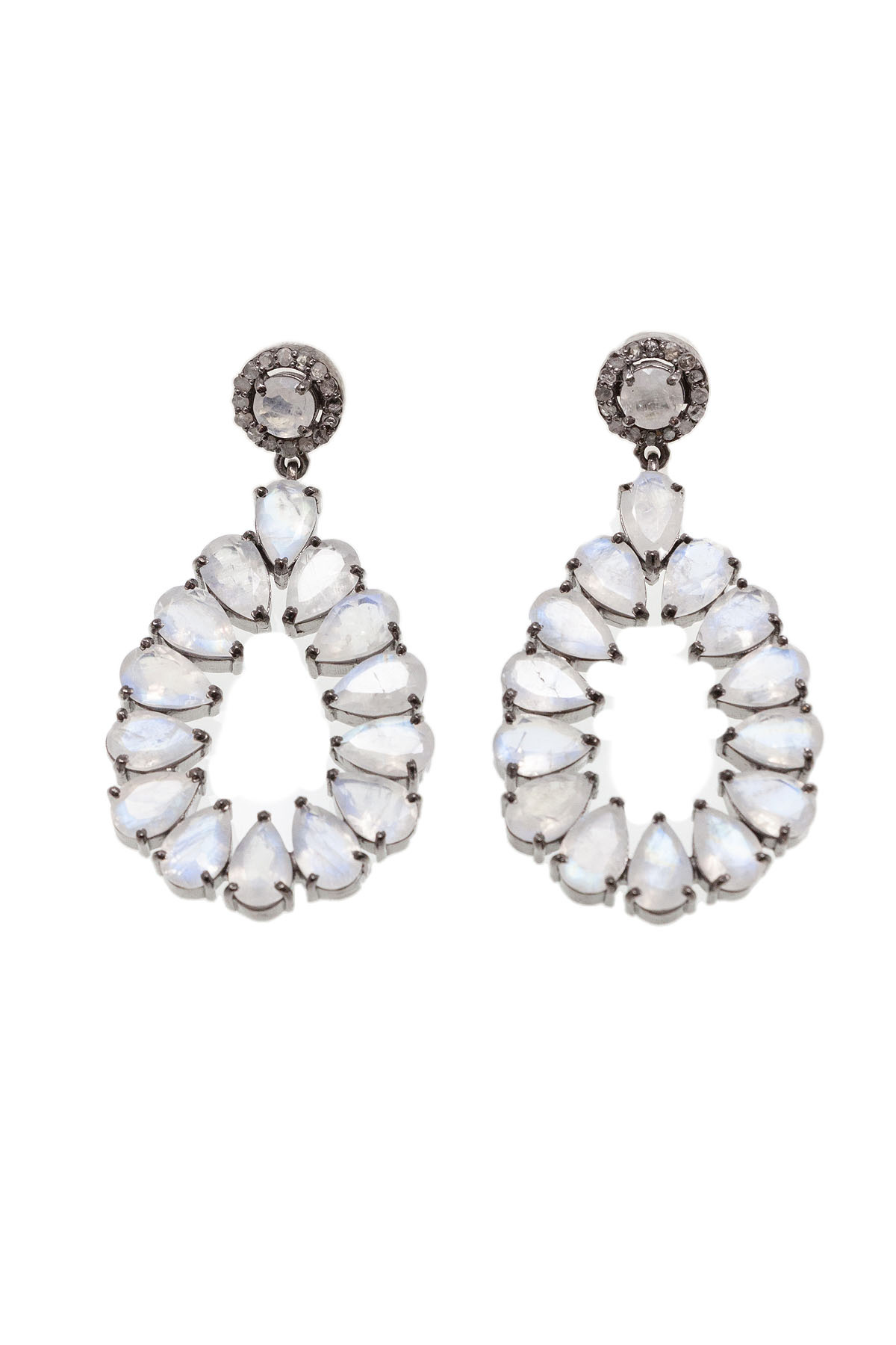 JMNYC DESIGNS Rainbow Moonstone With Diamond Earrings