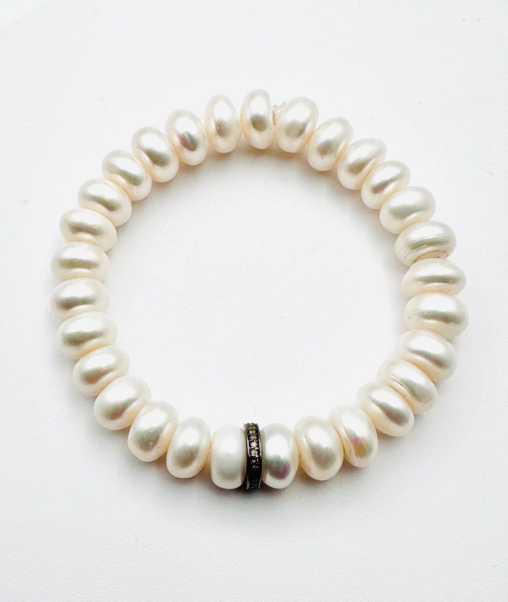 JMNYC Freshwater Button Pearl Stretch Bracelet