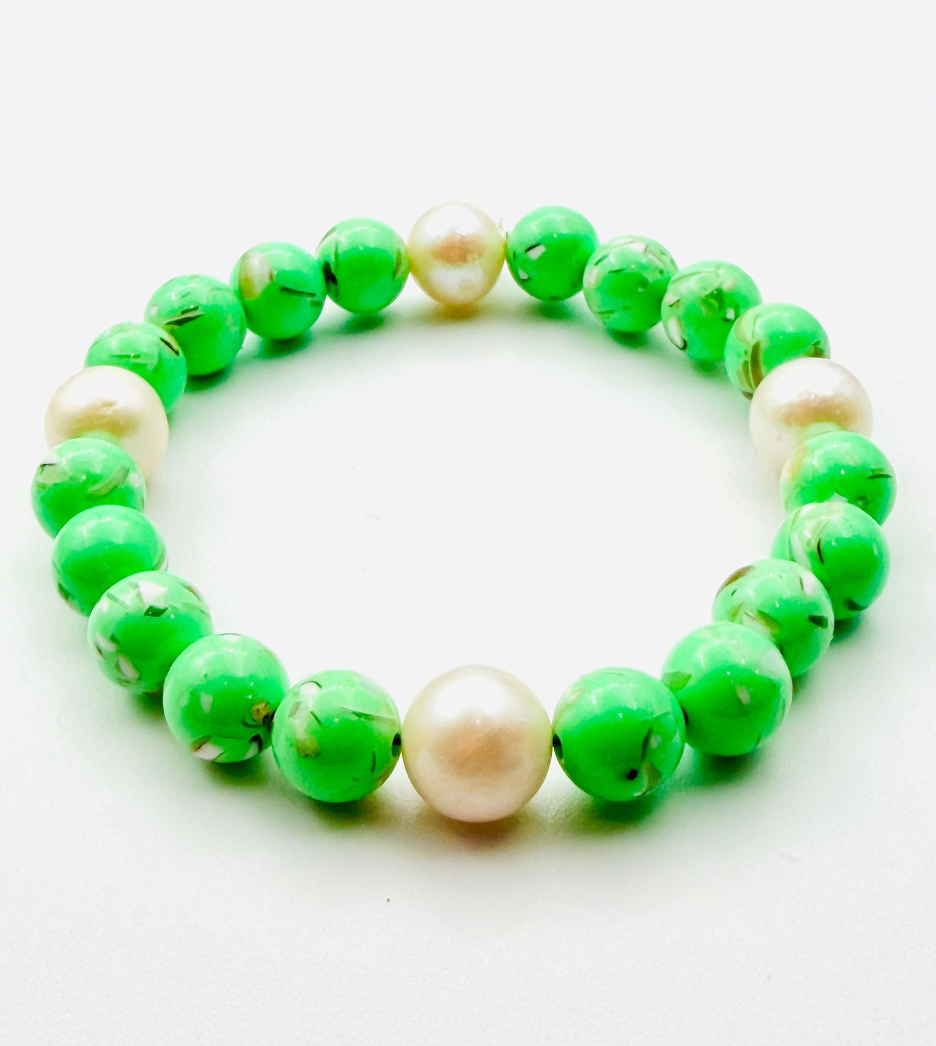 JMNYC Lime Green Jasper & Pearl Stretch Bracelet