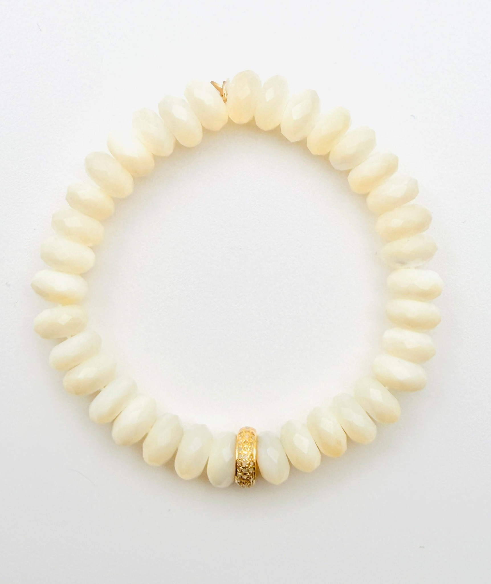JMNYC Faceted Mother of Pearl and Diamond Rondelle Stretch Bracelet