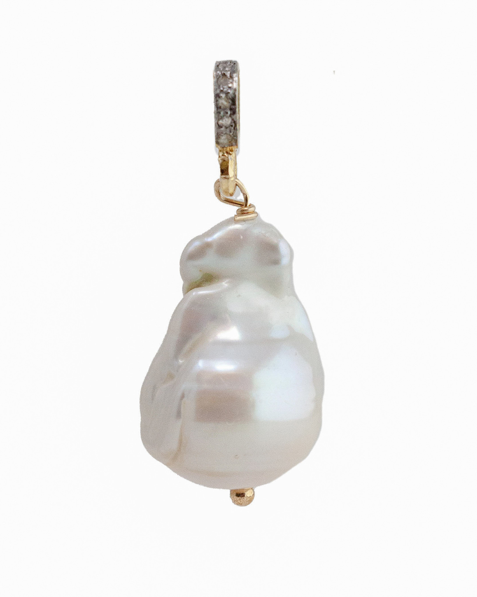Medium white baroque pearl pendant set in sterling silver and 14k gold vermeil with diamond accents.