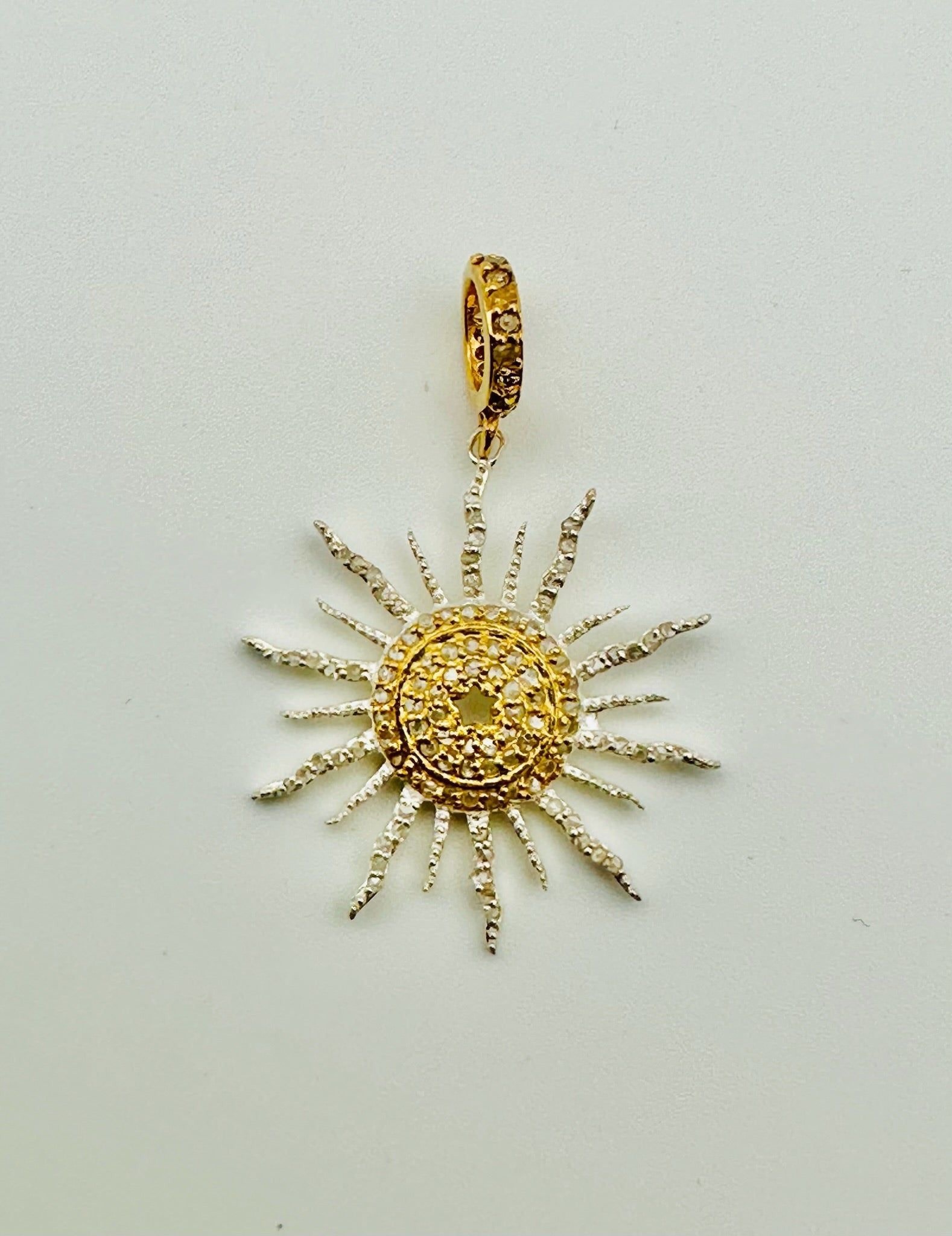 JMNYC Two-Tone Pave Diamond Sun Pendant