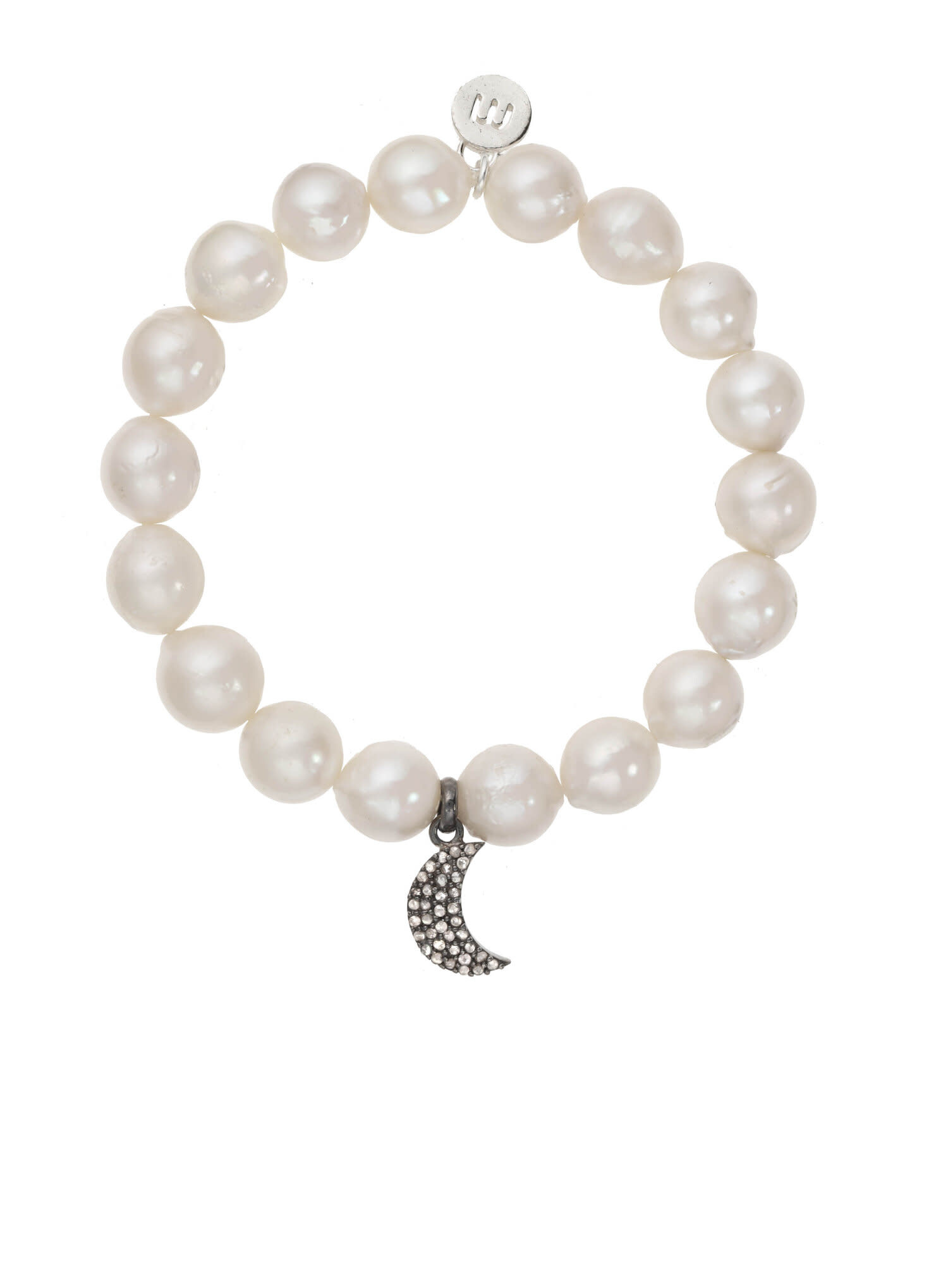 MARGO MORRISON White Baroque Pearl, Sterling Silver, Diamond Stretch Bracelet
