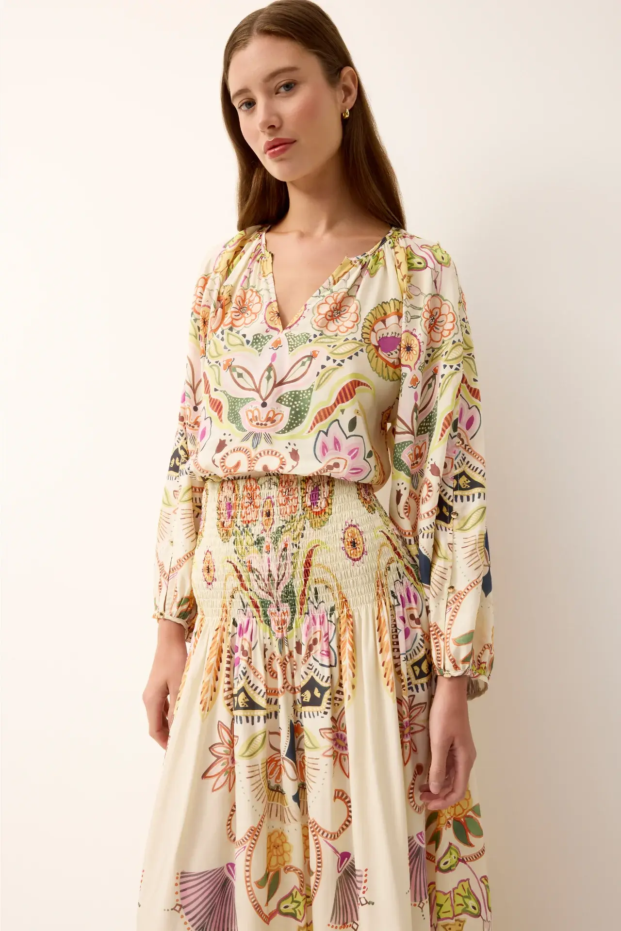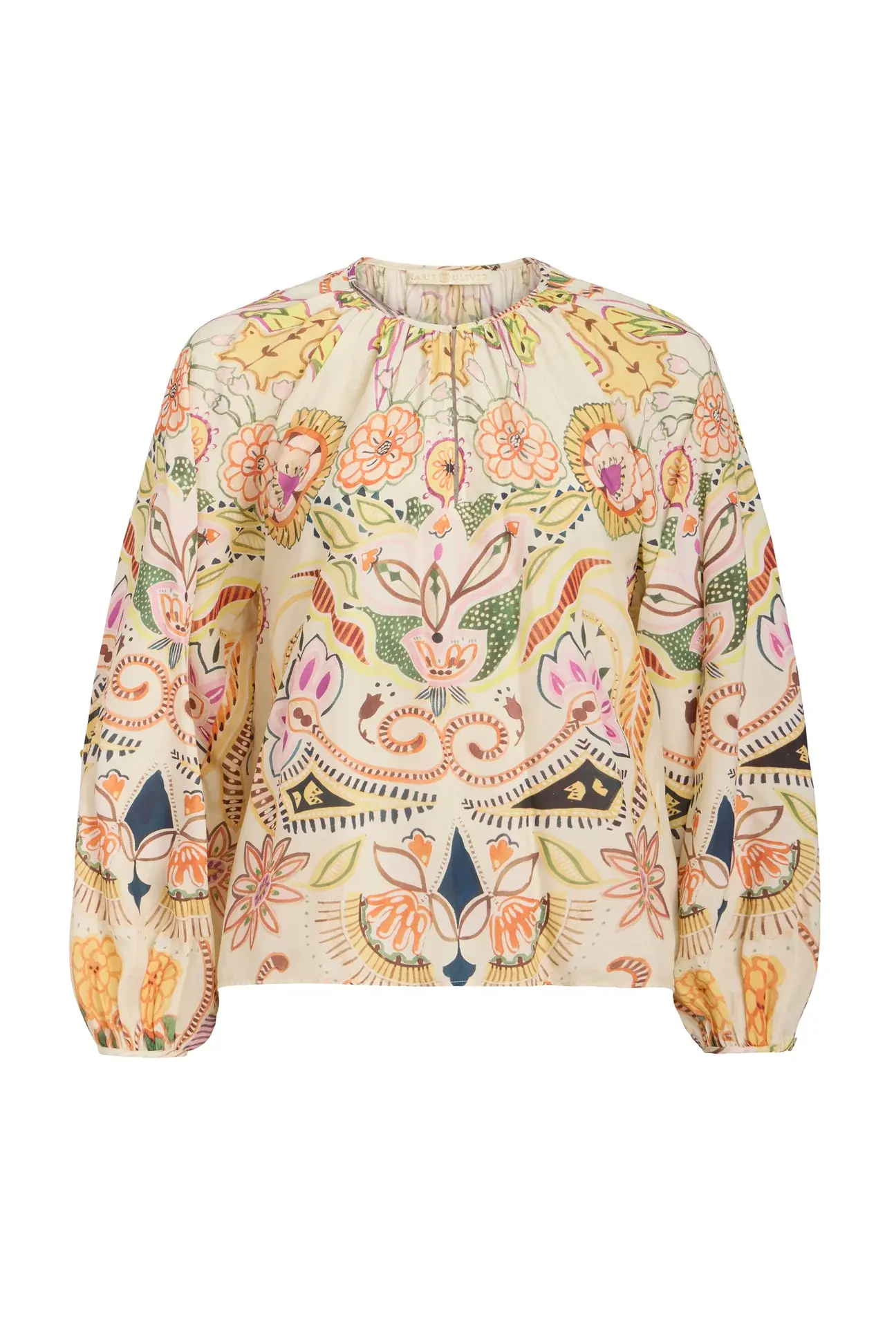 - Relaxed silhouette with gathered neckline