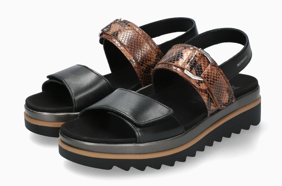 Create an accountWide, two-tone adjustable leather straps ensure a perfect fit, while the leather-wrapped contoured footbed guarantees comfort