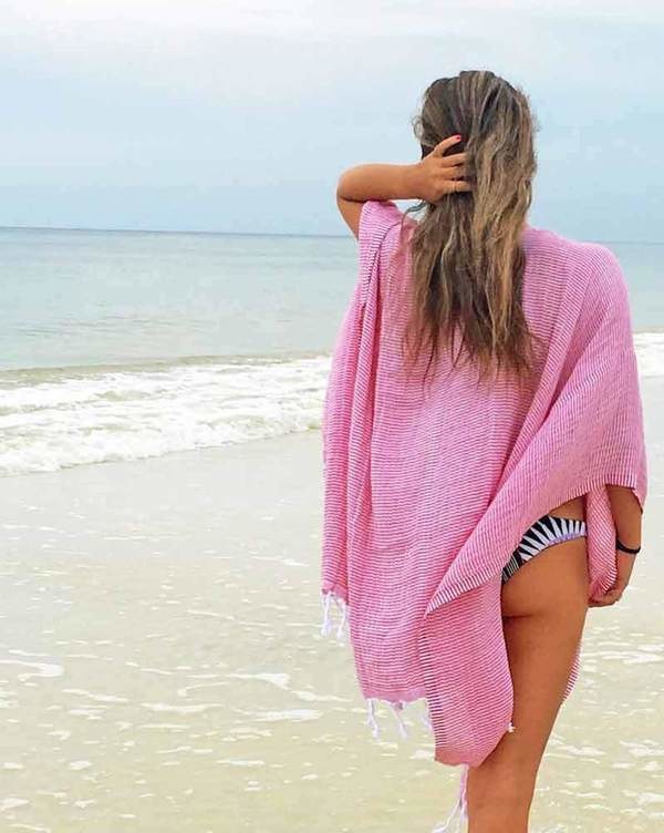 Create an accountThis Beach Wrap is hand woven on traditional looms in Turkey from soft, light cotton. It is pool-worthy, dinner-worthy and plane worthy too! Add instant style and lightweight coverage over your swimsuit after you towel off with it. This wrap can be worn multiple ways: wrap, sarong, or dress cover-up. You will never have a better summertime friend than this beauty. Paired with a matching travel bag that is perfect to hold a magazine, sunscreen and your shades. Beach This Way!