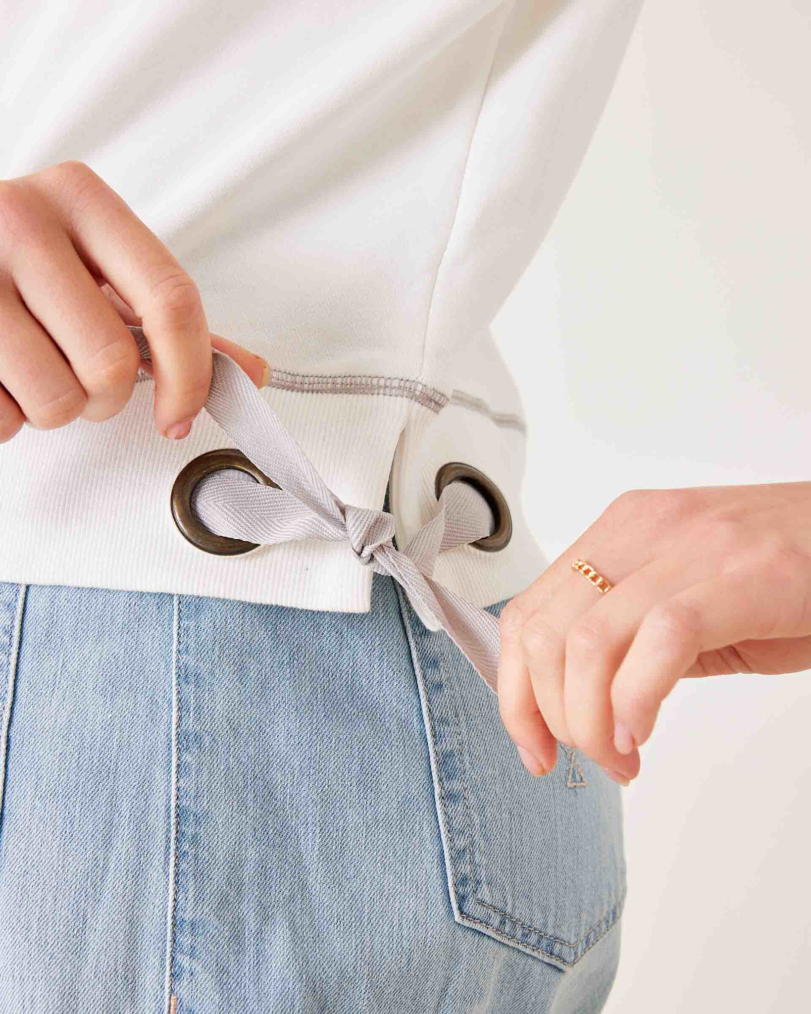 - Side grommets with twill bow-tie