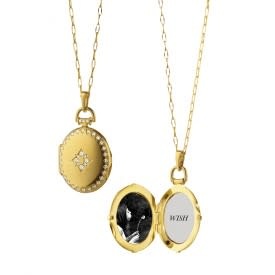 Create an accountThis miniature 18K Rose Gold locket is an instant heirloom, the locket features a diamond paved snowflake pattern with a diamond border. It measures 3/4" wide and is available on a 30-inch delicate open link chain. Photos push into the locket from the inside.
