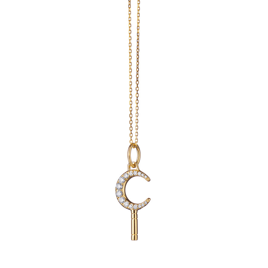 Everything starts with a dream. Our Mini "Dream" Moon Key Charm is accented with white diamonds. The perfect piece to wear alone or as a layered necklace.