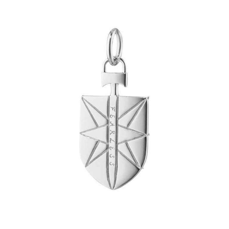 MONICA RICH KOSANN Sterling Silver & White Sapphire Mini "Fearless" Sheild Charm