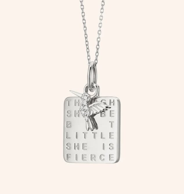 This Sterling Silver charm, inspired by Shakespeare's A Midsummer Night's Dream, features this iconic empowering quote. A dangling diamond hummingbird adds a whimsical symbol of resilience and strength.