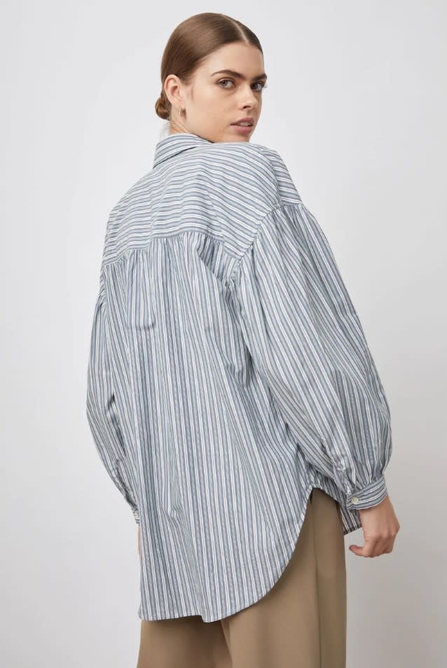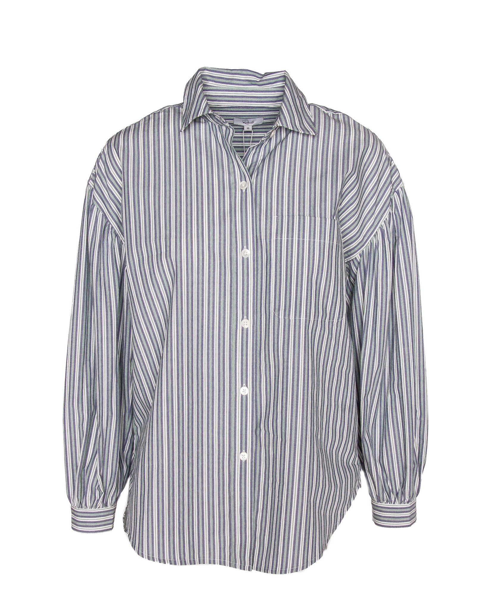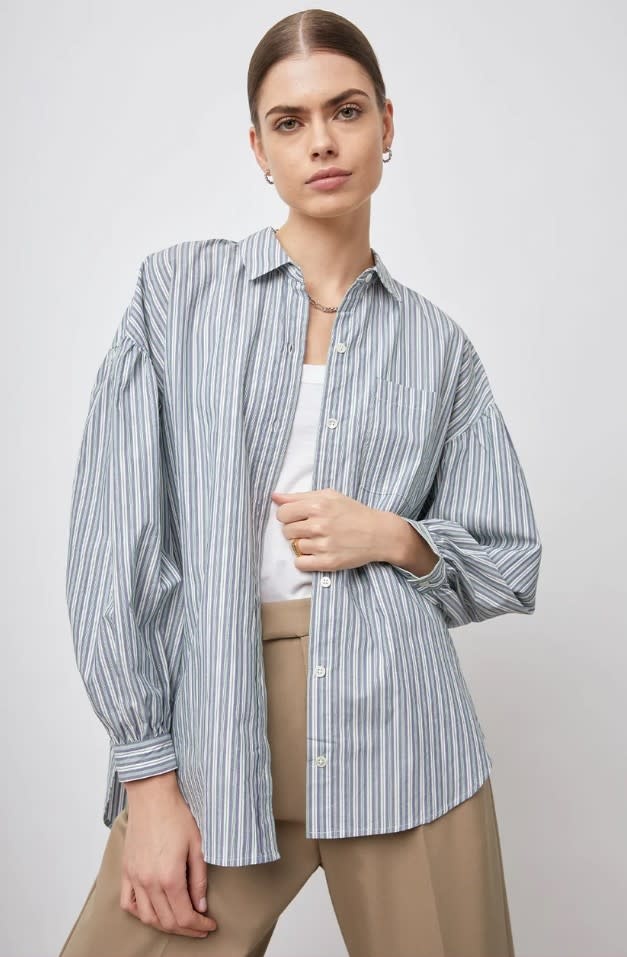 Create an accountThe Janae Shirt is a classic button-down but with a twist. It's stripes and crisp aesthetic are borrowed from menswear styling, while a dropped shoulder, full sleeves, and shirring add a feminine touch. The lightweight cotton blend features Tencel, a sustainable fabric that's biodegradable and compostable.