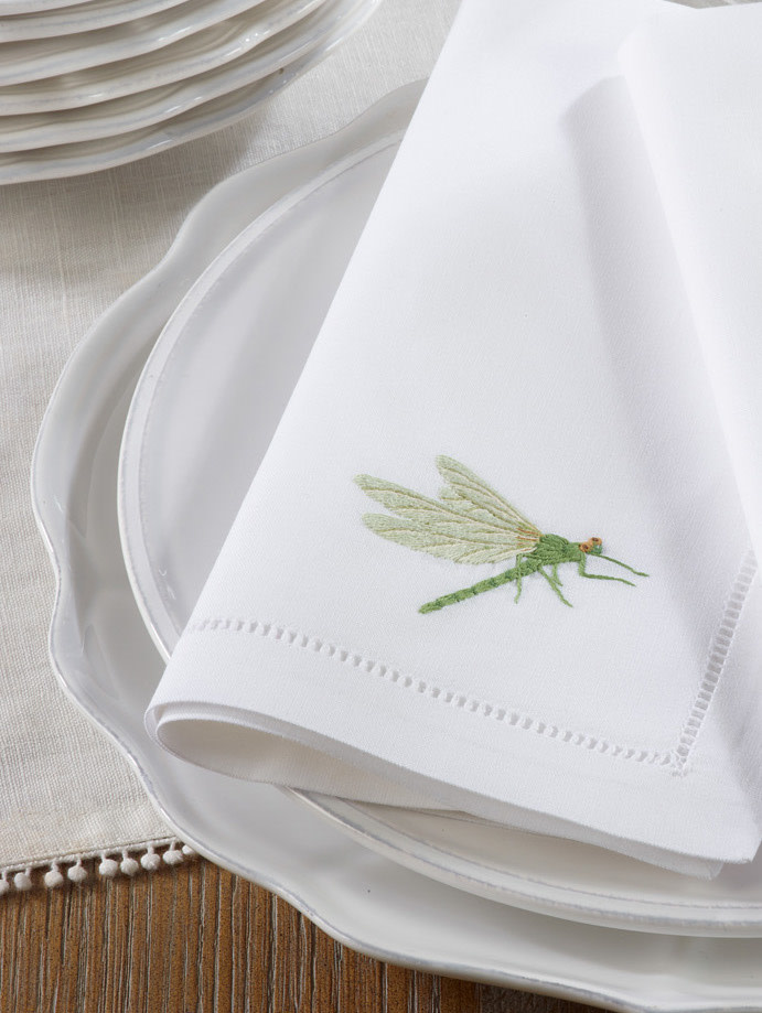 SARO Embroidered Dragonfly Hemstitch Napkin