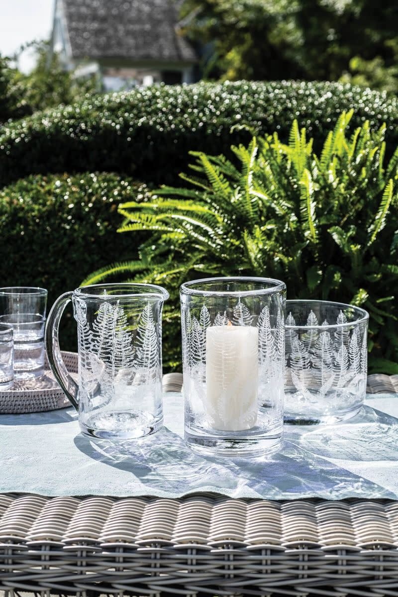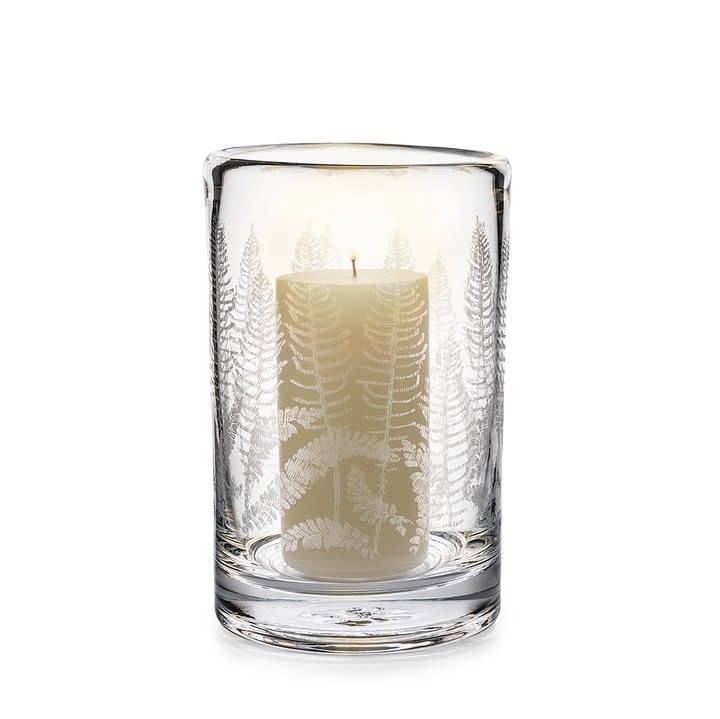 Inspired by etched glass pieces from Simon’s Georgian glass collection, our new botanical fern motif is a classic symbol of the arrival of spring. Show off the texture of this simple cylindrical shape by illuminating from within with a pillar candle; or put it on display as a nature-inspired vase.