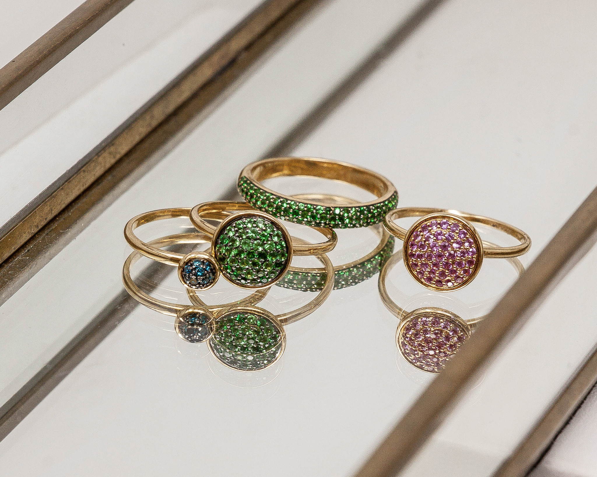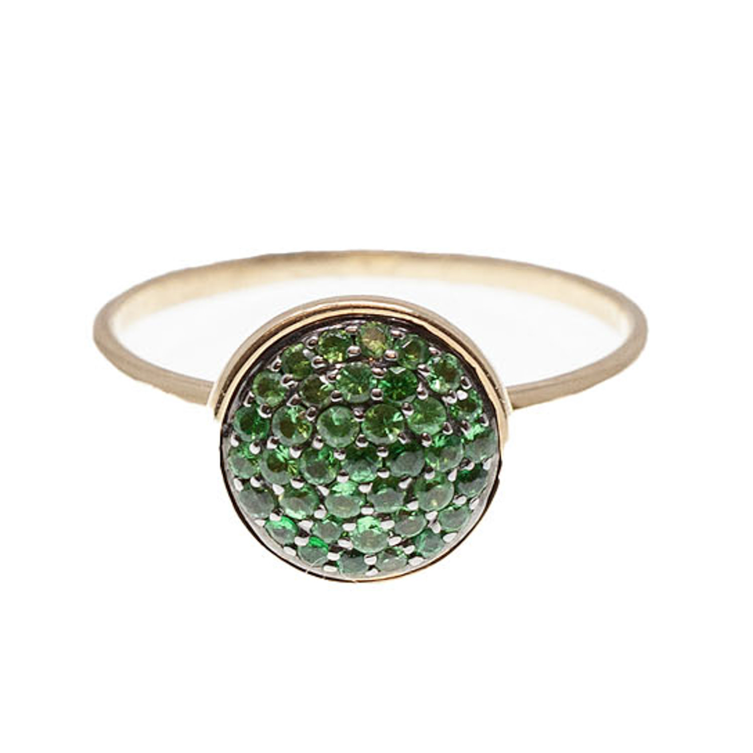 Create an accountSay hello to this glorious 18k yellow gold tsavorite ring from Syna. The chakra is 10mm and is made up of .4 cts of tsavorite garnet in a brilliant green color.