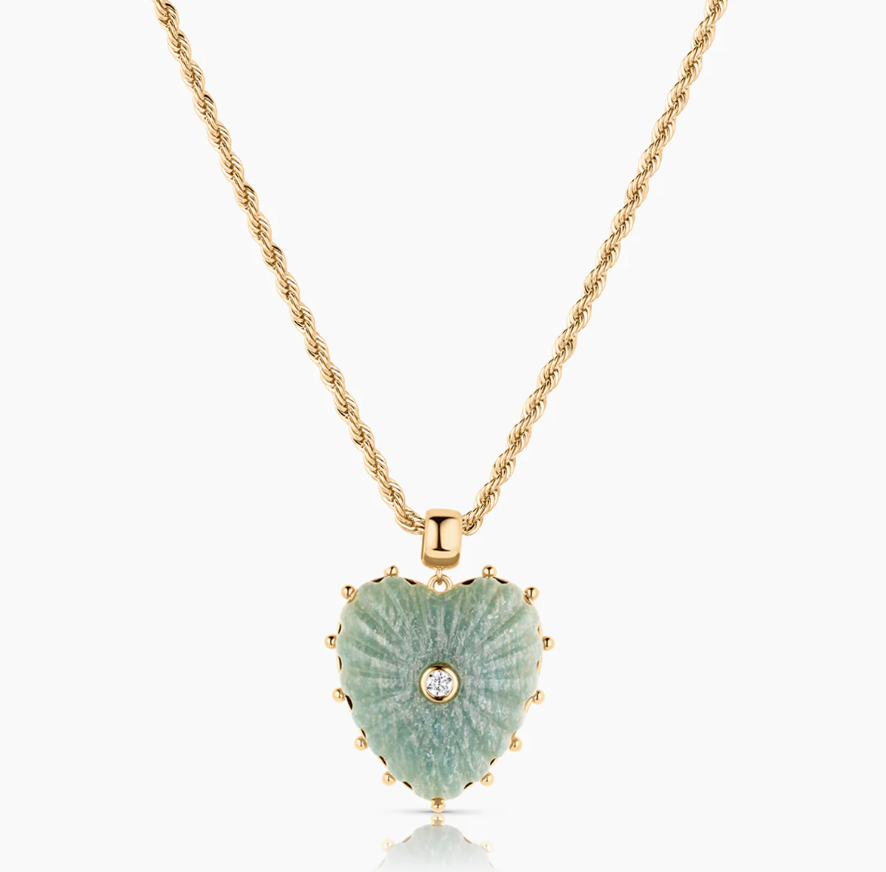 Create an account- Materials: 14k gold plated, cubic zirconia, hand-carved amazonite